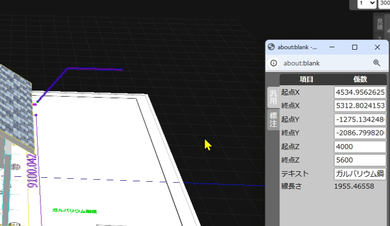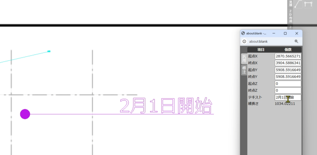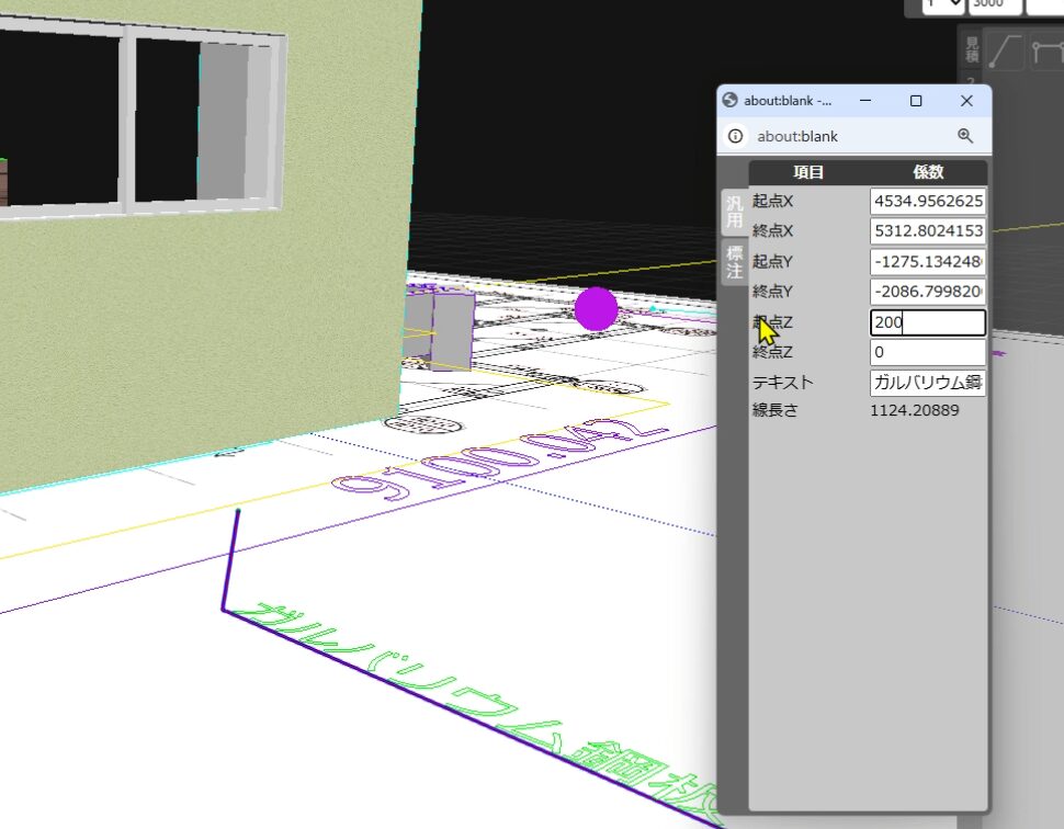 最後に汎用タブの「終点Z」(付箋テキスト表示の高さ)を地面から設定したい高さ数値を入力