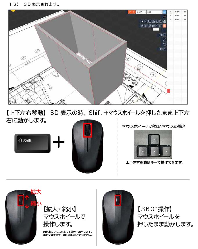 2. 視点の変更はマウスのホイール(グルグル部分)を押した状態で上下左右にマウス操作(地球儀を回すイメージ)